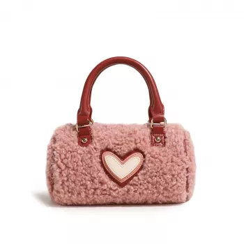 Cute Plush Boston Shoulder Bag with Heart Embroidery